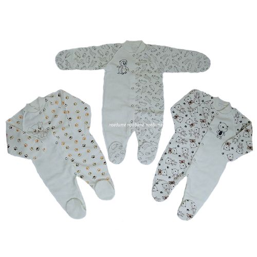 Комбинезон без воротничка, с длинным рукавом, спереди и между ножек на кнопочках.