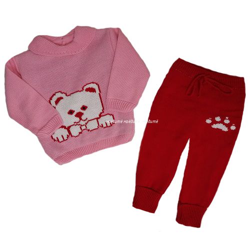 "МоёДитё" костюм на девочку из 2-х предметов "Лапки" розовый + красный "Лотос"